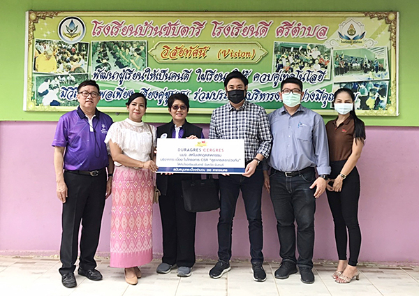 โดยมี คุณจิโรภาส เจริญภักดี (ที่ 4 จากซ้าย) ผู้จัดการฝ่ายขาย UMI GROUP พร้อมด้วย คุณนันทชัย โรจน์วรรณสินธุ์ (ซ้าย) อดีตประธานหอการค้าจังหวัดจันทบุรี และประธานกรรมการ บริษัท บ้านวัสดุ จำกัด คุณพรรณธิดา โรจน์วรรณสินธุ์ (ที่ 3 จากซ้าย) ผู้ว่าการภาค 3340 สโมสรโรตารีสากล อี-คลับ และ รองประธานกรรมการ บริษัท บ้านวัสดุ จำกัด ร่วมมอบกระเบื้องให้กับ คุณภัทรภรณ์ คงกระจ่าง (ที่ 2 จากซ้าย) ผู้อำนวยการ โรงเรียนบ้านซับตารี จังหวัดจันทบุรี เมื่อเร็ว ๆ นี้