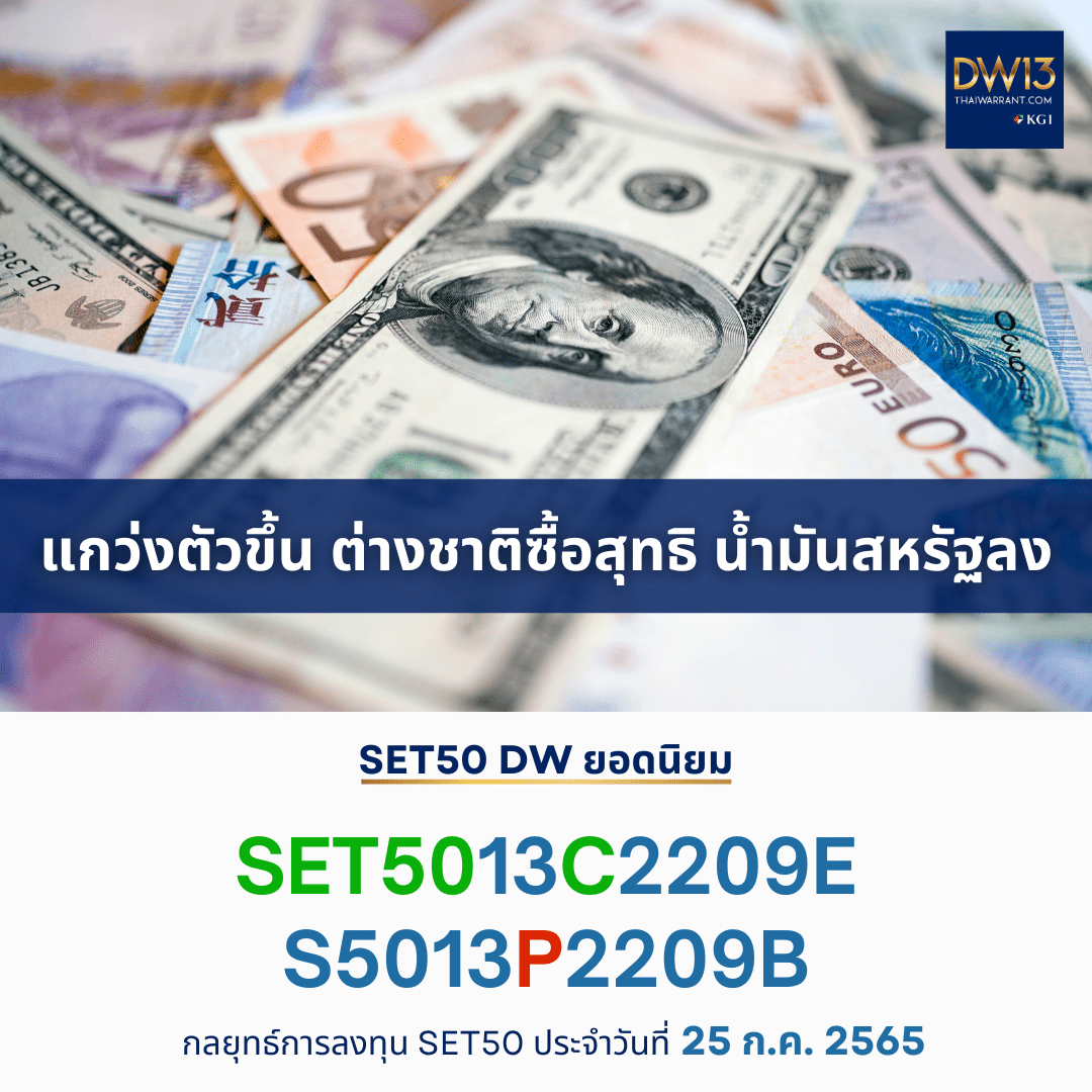 ศุกร์ทีผ่านมาดาวโจนส์ปิดลบ 137 จุด (-0.4%) มาปิดที่ 31,899จุด จากบริษัทที่ผลประกอบการออกมาอ่อนแอ เช่น สแนป นอกจากนี้ดัชนีผู้จัดการฝ่ายจัดซื้อ (PMI) ภาคบริการเบื้องต้นสหรัฐประจำเดือนมิ.ย.อยู่ที่ 47.0 เป็นระดับต่ำสุดในรอบ 26 เดือนจากเดือนก่อนที่ 52.7 ด้านราคาน้ำมัน WTI ส่งมอบเดือนก.ย.ปิดลดลง 1.65 (-1.7%) ดอลลาร์สหรัฐ/บาร์เรล มาปิดที่ 94.70 ดอลลาร์สหรัฐ/บาร์เรล หลังจากแนวโน้มอุปสงค์น้ำมันเบนซินที่ลดลงในช่วงฤดูร้อนของสหรัฐซึ่งเป็นช่วงเวลาที่ชาวอเมริกันมักขับขี่รถยนต์เพื่อการท่องเทียว นอกจากนี้ตัวเลขเศรษฐกิจสหรัฐออกมาอ่อนแอ โดยดัชนี PMI ภาคบริการสหรัฐออกมา 47 ต่ำกว่าระดับ 50 ซึ่งเป็นระดับที่บ่งชี้ว่าภาคธุรกิจอยู่ในภาวะหดตัว ด้านศบค. (22 ก.ค.) รายงานผู้ติดเชื้อรายใหม่ที่ 2,390ราย ผู้รักษาหายเพิ่มขึ้น 2,358 รายและมีผู้เสียชีวิตเพิ่ม 30 ราย
