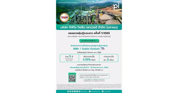มิติหุ้น – บริษัทหลักทรัพย์ พาย จำกัด (มหาชน) หรือ “Pi” “พาย” (บล.พาย) เปิดดีลขายหุ้นกู้ รับหน้าที่เป็นผู้จัดจำหน่ายหุ้นกู้ระยะยาวของบริษัท ทีพีไอ โพลีน เพาเวอร์ จำกัด (มหาชน) หรือ “TPIPP” ครั้งที่ 1/2565 ซึ่งมีกำหนดไถ่ถอนครบ 5 ปี หรือในเดือนสิงหาคมปี 2570 อัตราดอกเบี้ยคงที่สูงถึง 4.10% ต่อปี รวมไปถึงมีระยะเวลาจ่ายดอกเบี้ยทุก 3 เดือนตลอดอายุหุ้นกู้ จำนวนเสนอขายรวมหุ้นกู้สำรองไม่เกิน 6,000,000 หน่วย คิดเป็นมูลค่ารวมทั้งสิ้นไม่เกิน 6,000,000,000 บาท (หกพันล้านบาท) โดยมีธนาคาร ซีไอเอ็มไทย จำกัด (มหาชน) เป็นนายทะเบียนหุ้นกู้ และธนาคาร กรุงศรีอยุธยา จำกัด (มหาชน) เป็นผู้แทนผู้ถือหุ้นกู้
