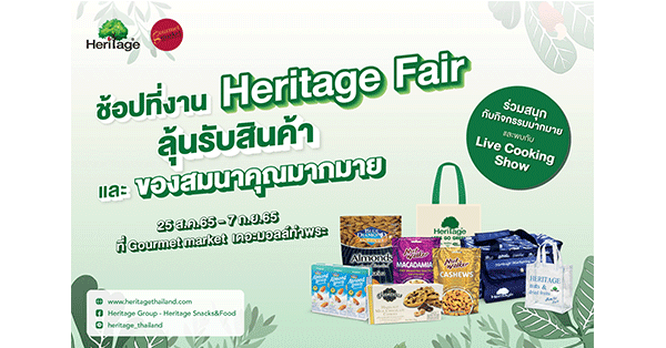 มิติหุ้น – เครือเฮอริเทจ ผู้ผลิตและจัดจำหน่ายอาหารและเครื่องดื่มเพื่อสุขภาพ ยกขบวนสินค้าแบรนด์คุณภาพมาให้คุณช้อปกันอย่างจุใจในงาน “Heritage Fair” โดยชวนคุณมาเติมเต็มความสุขและส่งต่อสุขภาพดีไปกับผลิตภัณฑ์เพื่อสุขภาพจากแบรนด์ชั้นนำในเครือเฮอริเทจ นอกจากนี้ยังมีสิทธ์ได้รับสินค้าและของสมนาคุณมากมาย