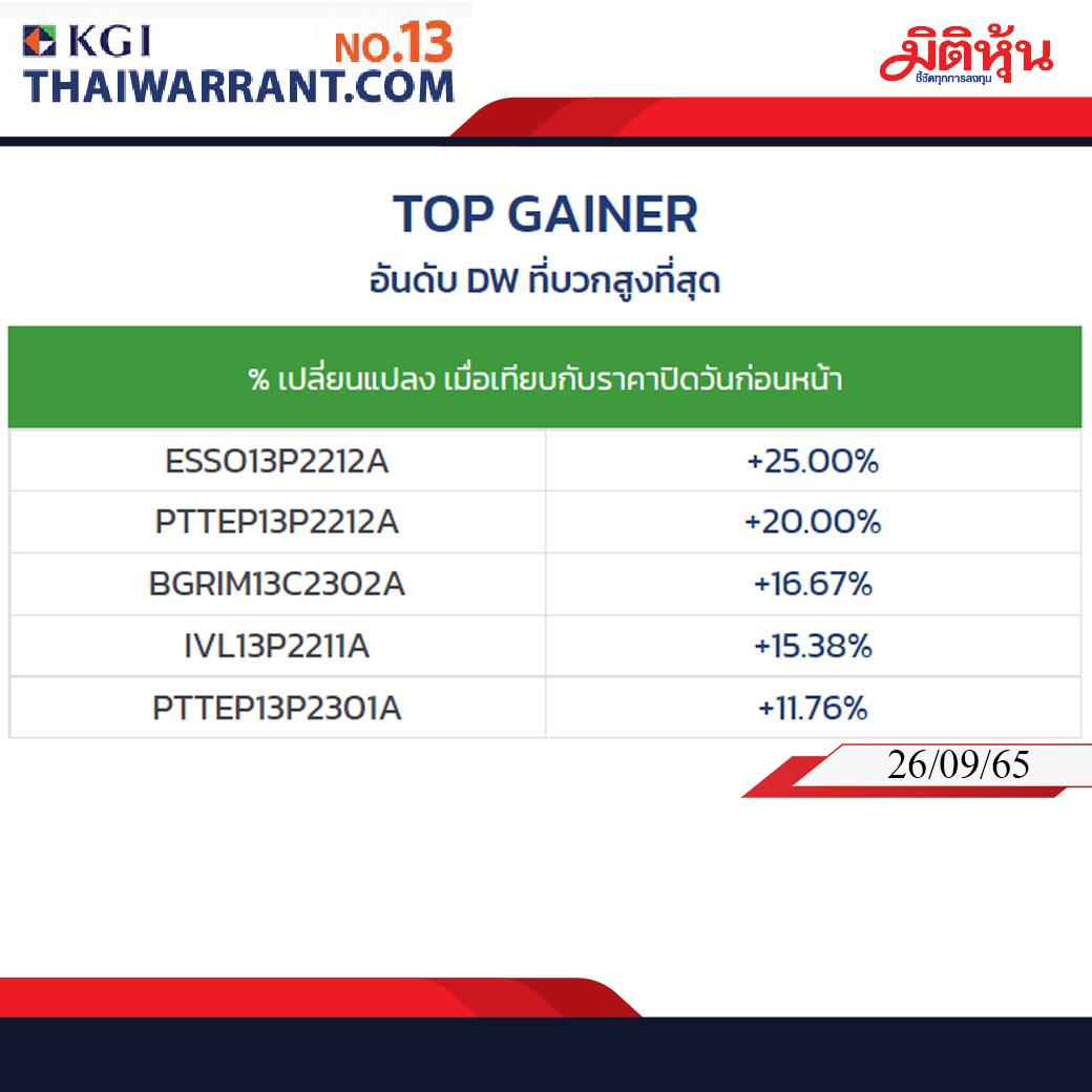 มิติร้อน TOP GAINER DW13 26 กันยายน 2022 / เวลา 11:05 น. 71 ติดตามข้อมูลเพิ่มเติมได้ที่ https://www.thaiwarrant.com/topvolume @mitihoonwealth https://lin.ee/cXAf0Dp