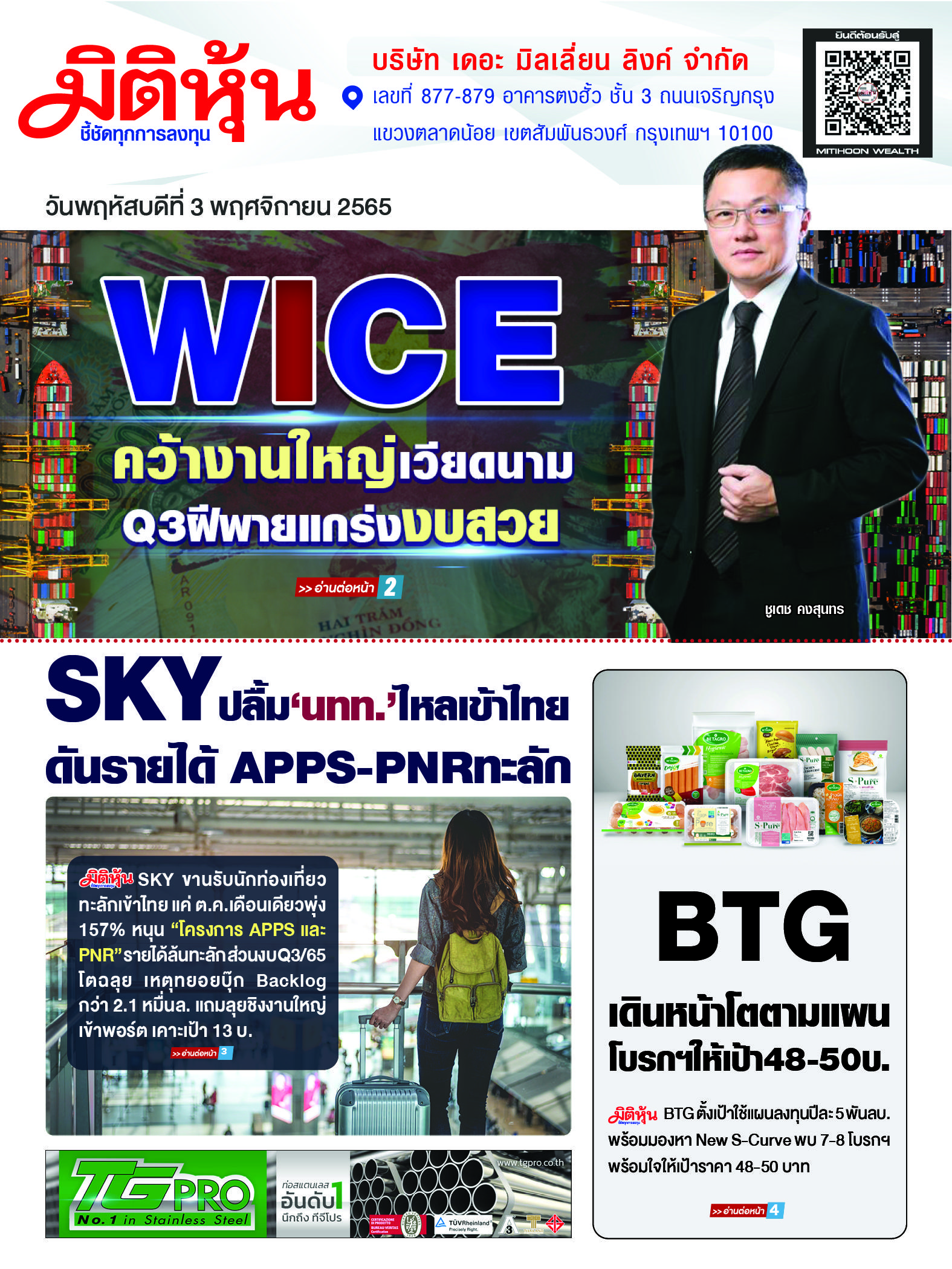 นสพ. “มิติหุ้น” ชี้ชัดทุกการลงทุน ฉบับวันที่ 3 พฤศจิกายน 2565