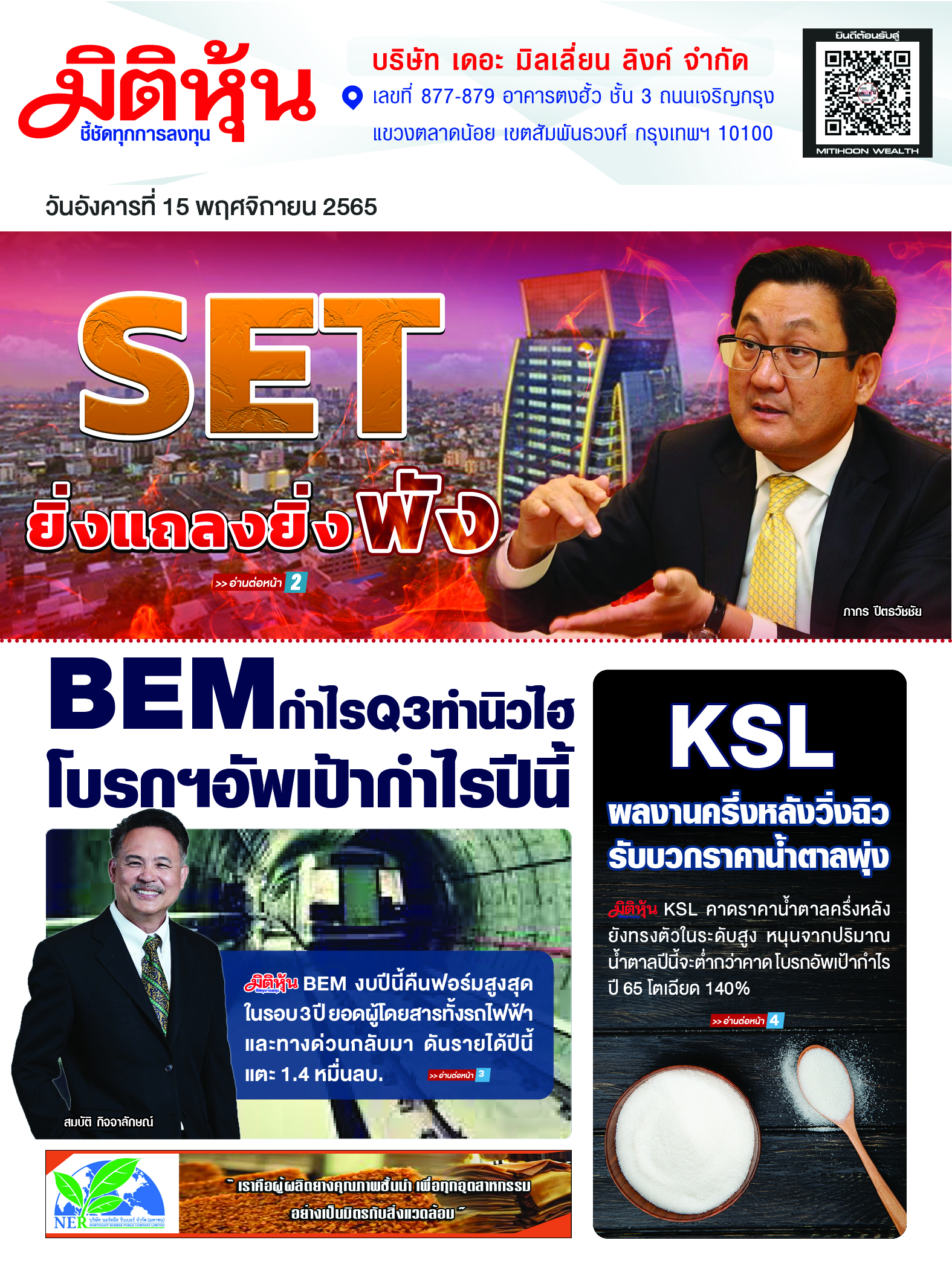 นสพ. “มิติหุ้น” ชี้ชัดทุกการลงทุน ฉบับวันที่ 15 พฤศจิกายน 2565