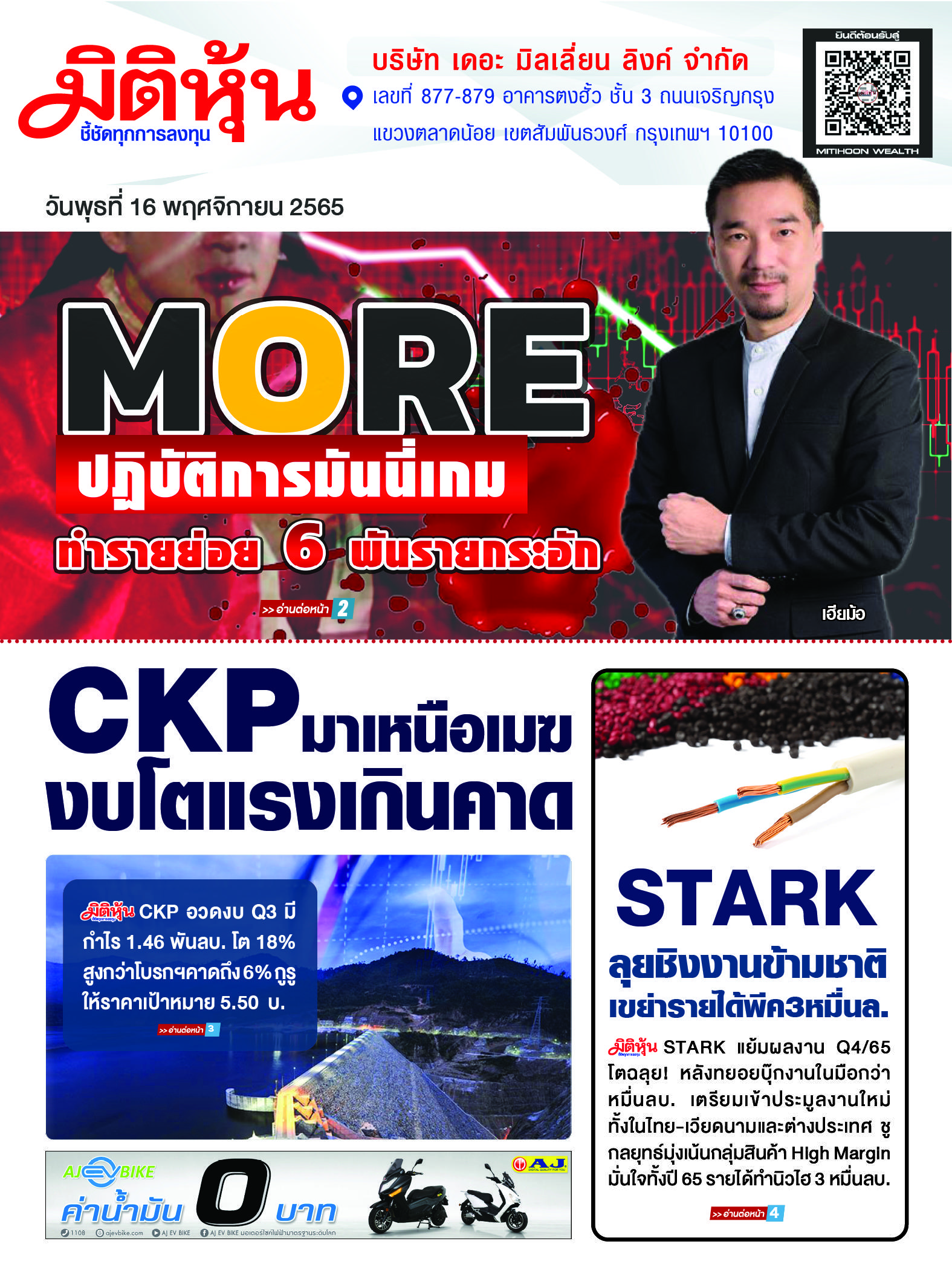 นสพ. “มิติหุ้น” ชี้ชัดทุกการลงทุน ฉบับวันที่ 16 พฤศจิกายน 2565
