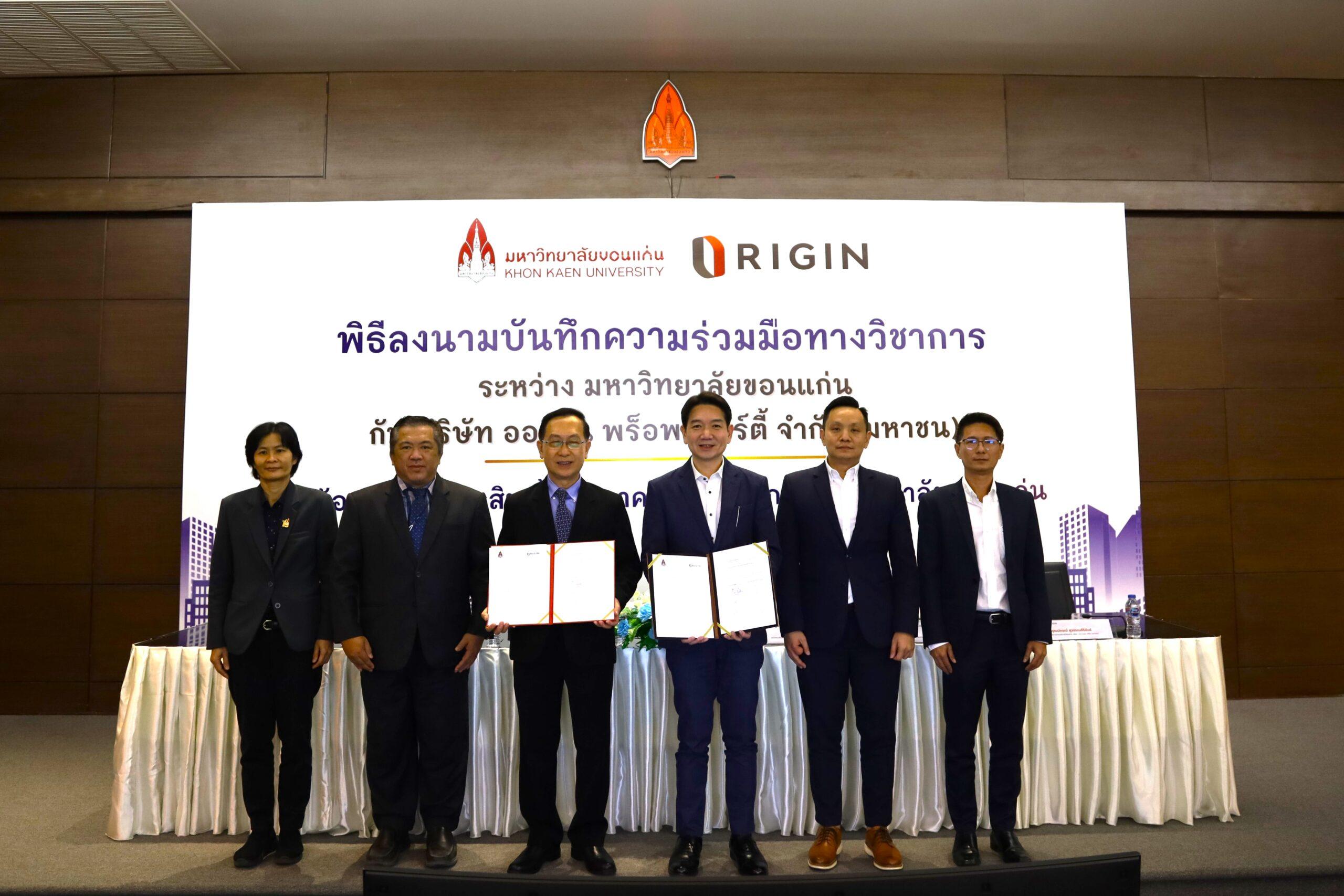 การลงนามบันทึกความเข้าใจ (MOU) ระหว่างมหาวิทยาลัยขอนแก่น กับบริษัท ออริจิ้น พร็อพเพอร์ตี้ จำกัด (มหาชน) มีวัตถุประสงค์เพื่อ ดำเนินโครงการออริจิ้น-ขอนแก่น วัลเลย์ (Origin Khon Kaen Valley) โดยมุ่งเน้น การร่วมออกแบบและพัฒนาหลักสูตรกับสาขาวิชาต่างๆ เพื่อให้บัณฑิตหรือนักศึกษามีคุณลักษณะตรงตามความต้องการขององค์กรและตลาดแรงงาน พร้อมทั้งเปิดพื้นที่ ให้นักศึกษาของมหาวิทยาลัยขอนแก่นได้มีโอกาสเข้าฝึกงาน สนับสนุนโอกาสในการทำงาน กับบริษัทในเครือออริจิ้น และยกระดับทักษะความสามารถของกลุ่มคนรุ่นใหม่ให้สอดคล้องกับความต้องการของภาคธุรกิจและตลาดแรงงาน เพื่อให้จังหวัดขอนแก่นก้าวไปสู่การเป็นหนึ่งในศูนย์กลางแรงงานศักยภาพสูง Hub of Talents ของประเทศไทย